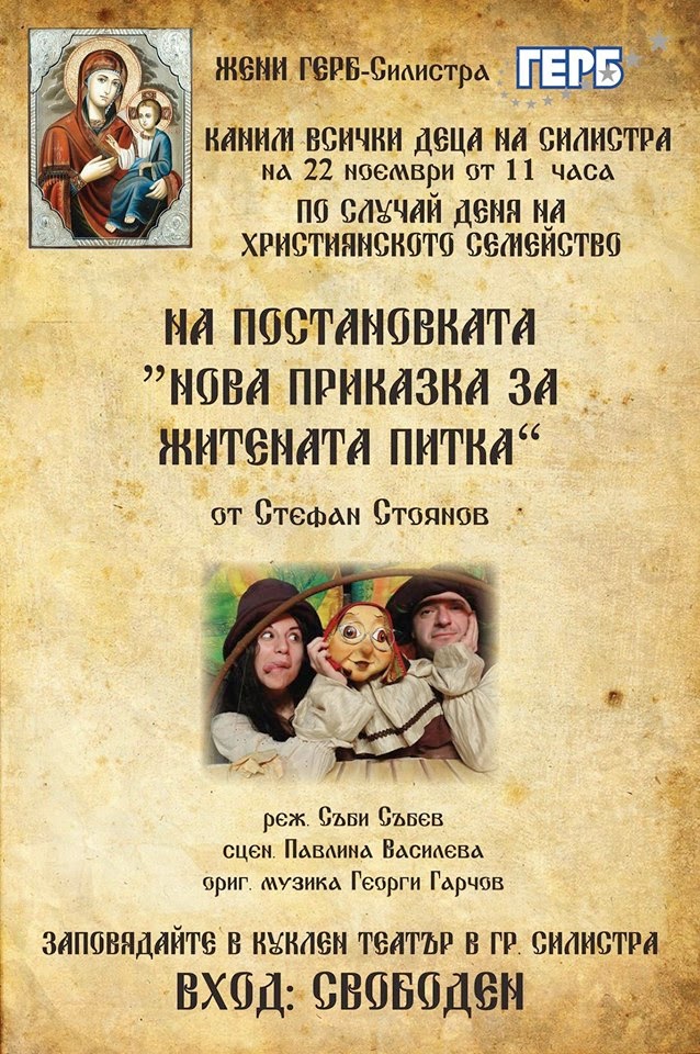 Versinaj Zheni Gerb Kanyat Na Nova Prikazka Za Zhitenata Pitka V Kuklen Teatr Silistra Za Denya Na Hristiyanskoto Semejstvo
